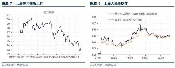 上周美元指數(shù)上漲,上周五收于93.8510點(diǎn),環(huán)比上漲0.86%(圖表7)。聯(lián)儲(chǔ)票委杜德利在上周表示市場(chǎng)低估聯(lián)儲(chǔ)加息的可能性,今年依舊可能加息兩次,受此影響,美元持續(xù)反彈,周五發(fā)布的非農(nóng)數(shù)據(jù)總體低于預(yù)期,但時(shí)薪上漲,就業(yè)結(jié)構(gòu)好轉(zhuǎn),美元當(dāng)日由跌轉(zhuǎn)漲。上周五美元兌人民幣即期匯率報(bào)收6.5023,環(huán)比上行168bp;美元兌離岸人民幣定盤價(jià)6.5170,環(huán)比上行352bp;離岸與在岸人民幣匯率差147bp(圖表8).