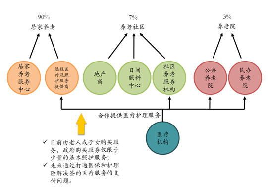 此前,民政部發(fā)布的《社會(huì)養(yǎng)老服務(wù)體系建設(shè)規(guī)劃》中提出“9073”的養(yǎng)老模式,即90%的老年人在社會(huì)化服務(wù)協(xié)助下通過家庭照護(hù)養(yǎng)老,7%的老年人通過購買社區(qū)照顧服務(wù)養(yǎng)老,3%的老年人入住養(yǎng)老服務(wù)機(jī)構(gòu)集中養(yǎng)老。