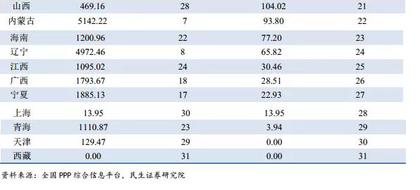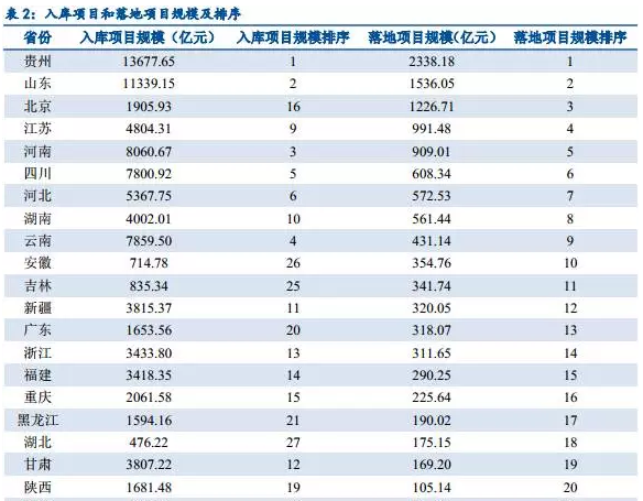 從表2可以看出,入庫項(xiàng)目規(guī)模和落地項(xiàng)目規(guī)模呈現(xiàn)正相關(guān),入庫項(xiàng)目規(guī)模排名靠前的貴州、山東、河南、四川等地表現(xiàn)不俗,落地項(xiàng)目規(guī)模遙遙領(lǐng)先。值得提出的是,北京雖然入庫項(xiàng)目總量不高,但隨著地鐵14和16號(hào)線、興延高速等大型項(xiàng)目相繼落地,PPP項(xiàng)目落地駛?cè)肟燔嚨?,落地?guī)模大幅提升。