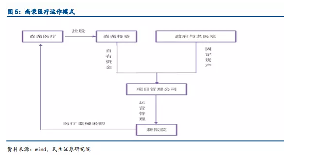 可以預(yù)見未來醫(yī)療行業(yè)市場景氣度提升且市場規(guī)模持續(xù)增加,有望迎來快速發(fā)展的機(jī)遇期,為社會(huì)資本提供了巨大的投資空間。尚榮醫(yī)療緊跟國家政策的步伐,發(fā)展PPP模式項(xiàng)目,通過股權(quán)投資方式,輔以融資杠桿,主營業(yè)務(wù)包括醫(yī)院整體建設(shè)、醫(yī)療器械產(chǎn)銷和醫(yī)院后勤管理服務(wù)三大板塊,涉及醫(yī)院規(guī)劃設(shè)計(jì)、醫(yī)院融資建設(shè)、醫(yī)療項(xiàng)目實(shí)施、醫(yī)院專業(yè)工程、醫(yī)療設(shè)備配置、醫(yī)院信息化系統(tǒng)、醫(yī)療用品生產(chǎn)等七大細(xì)分業(yè)務(wù)領(lǐng)域。尚榮醫(yī)療深入?yún)⑴c,除可以分享醫(yī)院的利潤外,還可掌控醫(yī)院醫(yī)療器械的采購與后勤管理等,已成為國內(nèi)大型的綜合醫(yī)療服務(wù)提供商,獲得了可觀的收益。