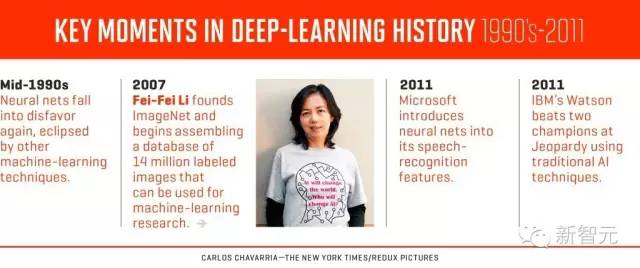 深度學(xué)習(xí)歷史關(guān)鍵點(diǎn):2007年李飛飛創(chuàng)立ImageNet;2011年微軟將神經(jīng)網(wǎng)絡(luò)引入語音識別;同樣2011年IBM Watson贏得Jeopardy冠軍。