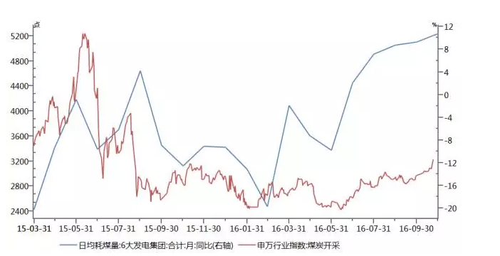 我們可以用煤炭股在資本市場表現(xiàn)的去理解這一線索。盡管按照一般的理解,煤炭股價(jià)是供給側(cè)改革在驅(qū)動(dòng);但從經(jīng)驗(yàn)數(shù)據(jù)來看,煤炭股股價(jià)的所有拐點(diǎn)都與發(fā)電耗煤增速高度相關(guān)。這意味著市場是有效的,基本面決定拐點(diǎn),供給側(cè)改革只是決定彈性。一直在加速的耗煤增速是映射在資本市場的價(jià)格反應(yīng)的主要理由。