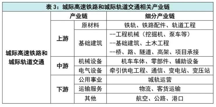 就產業(yè)方向而言,城際高速鐵路和城際軌道交通的產業(yè)鏈條也非常長,從原材料、機械到電氣設備再到公用事業(yè)和運輸服務,它將在推動整個社會發(fā)展和交通數字化、智能化方面起到基礎性作用。