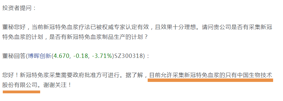 當(dāng)前獲準(zhǔn)從事特免血漿業(yè)務(wù)的公司僅有中國(guó)生物,對(duì)應(yīng)的上市公式為:天壇生物。