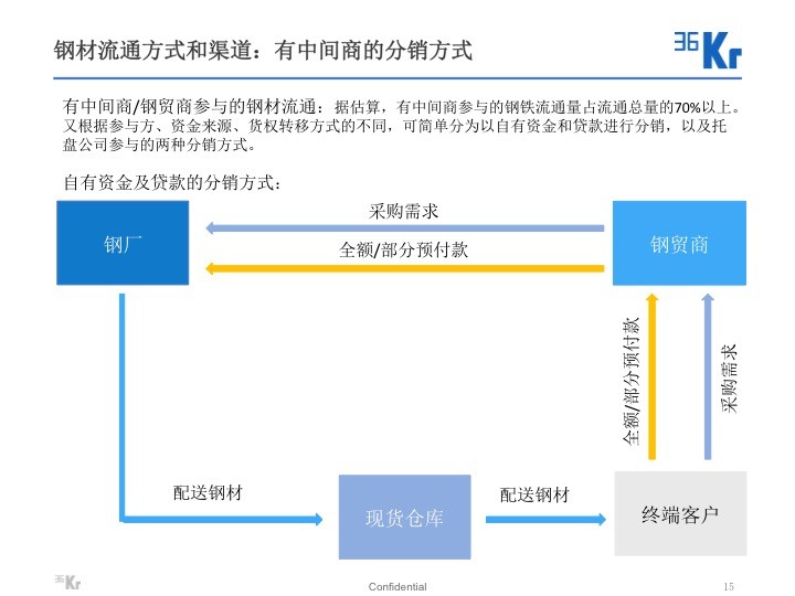 鋼鐵流通屬于資金密集型行業(yè)。鋼廠以收取部分或全部的預(yù)收款后發(fā)貨的銷售方式為主,而鋼鐵的終端用戶存在賒賬采購(gòu)的需求,在有鋼貿(mào)商 / 中間商參與的交易中,鋼貿(mào)商起到墊資的功能,而資金來(lái)源主要為銀行信貸。公開數(shù)據(jù)表明鋼貿(mào)商財(cái)務(wù)成本高達(dá) 15%-25%。